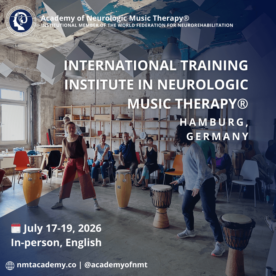 Vom 17.–19. Juli 2026 findet erneut das International Training Institute in Neurologic Music Therapy® (NMT™) statt – eine internationale, evidenzbasierte Fortbildung für Fachkräfte und fortgeschrittene Studierende im Gesundheitswesen. In dem dreitägigen Intensivtraining lernen die Teilnehmenden das NMT™-System mit seinen 20 Techniken kennen, vertiefen ihr Wissen zur angewandten Musikneurowissenschaft und üben die Umsetzung in die klinische Praxis – unter anderem in den Bereichen Motorik, Kognition, Sprache und psychosoziale Gesundheit.