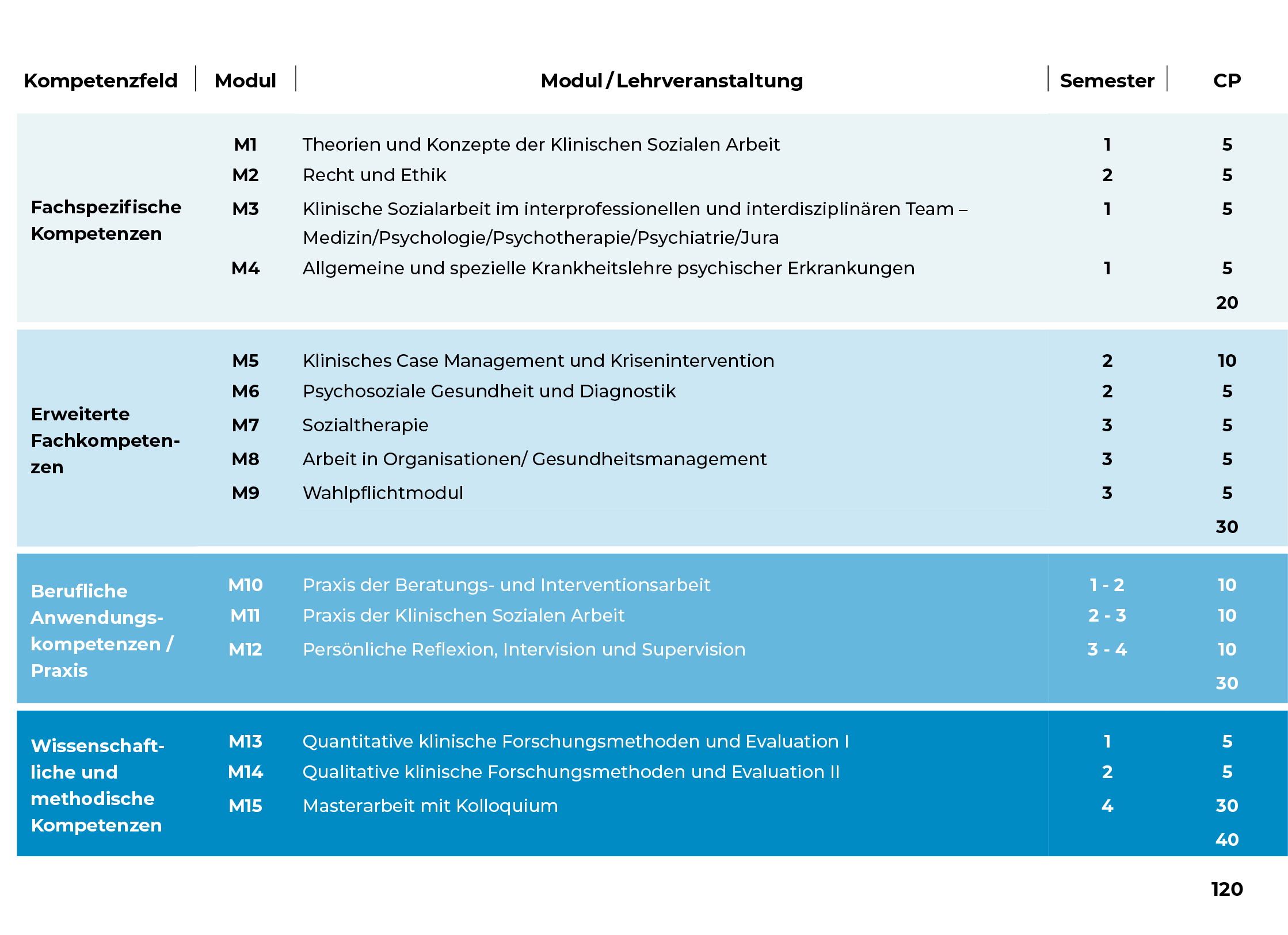 Im Zentrum des Masterstudiengangs Klinische Soziale Arbeit steht die Vermittlung vertiefter fachlicher, klinischer und wissenschaftlicher Kompetenzen. Das Studium befähigt Sie zu professionellem Handeln in komplexen psychosozialen, gesundheitsbezogenen Kontexten. Durch den hohen Praxisbezug und die interprofessionellen Perspektiven bereiten Sie sich umfassend auf Tätigkeiten mit einem hohen Verantwortungsgrad vor.